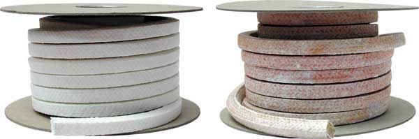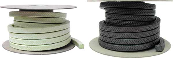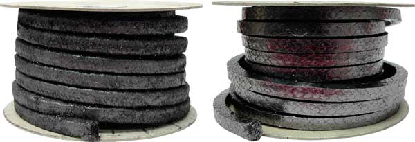 Braided compression packings are available in PTFE, Non-Asbestos, Carbon, Graphite, Aramid, and Flax Ramie fibers, Non-Asbestos, Carbon Fiber, and Graphite offering chemical resistance, heat conductivity, thermal stability, corrosion inhibitors, and self-lubricating with low friction for high peripheral speed. PTFE Braided Packings are high flexibility allowing it to conform to stuffing box conditions, less friction equals less wear and less heat generation, better heat transmission for cooler operation, lower shrinkage, providing improved sealing during operation, and less relaxation making for less maintenance and/or repair.