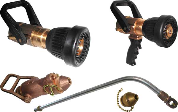 Akron Brass 3020, 3022, 3025, 2032, 2046, 2415, 2015, 2225, 2033, and 2047 – USCG accepted nozzles and applicators, designed for use with AFFF or water onboard ships. Akron 3020 conforms to MIL-N-24408E TY1-T1-1 or NSN 4210-00-465-1906, with NPSH threads.