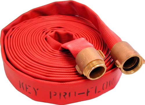 RC500SJ Single Jacket Rubber fire hose – A lightweight, heat resistant, rubber covered hose that delivers superior flow. Ozone and chemical resistant, the nitrile/PVC through-the-weave design allows the hose to expand under pressure, decreasing friction loss while increasing water flow. The ribbed rubber outer cover offers increased resistance to impact, punctures and abrasion. Reliable, maintenance-free, and requires no drying, making this the ideal hose for fire fighting. Available in NFPA compliant and UL Listed.