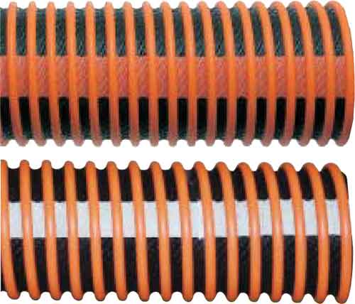 Composition: Black EPDM blended rubber tube, reinforced with spiraled high tensile textile cords and double steel helix wire, with EPDM cover.